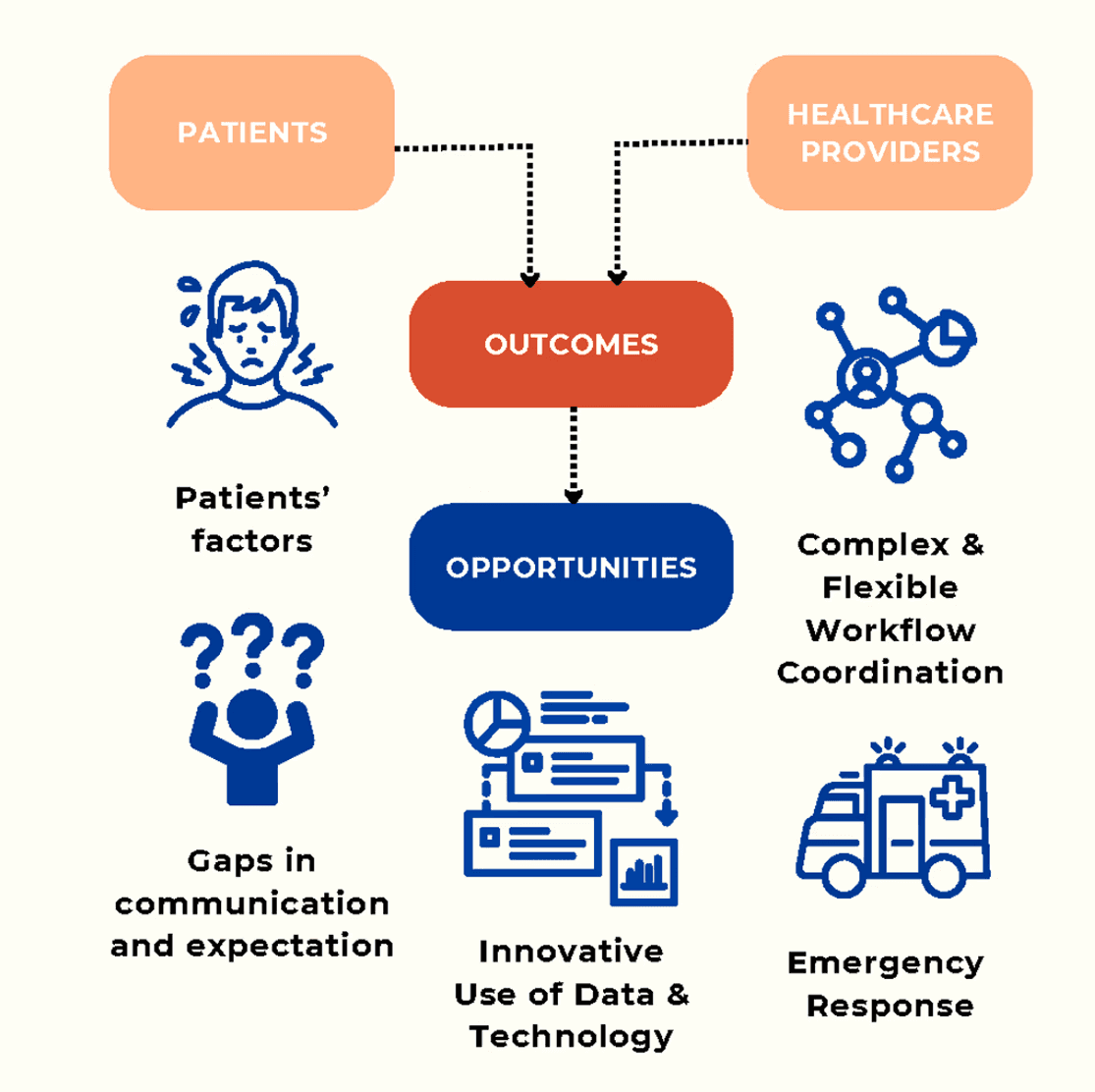 Fig. Key pain points and design opportunities: communication gaps, complex workflow coordination, and emergency response are the three pressure points where design can intervene.