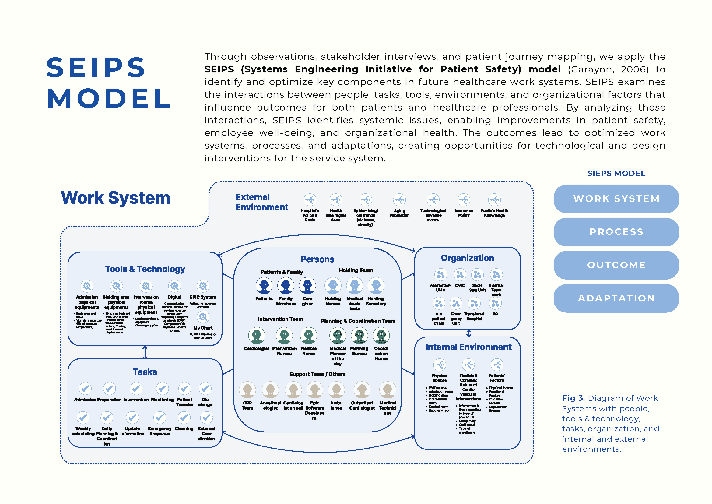 SEIPS model (Systems Engineering Initiative for Patient Safety) mapped how people, tasks, tools, and environment interact, and where they break down. It revealed that the real problem was not any individual tool or person, but the gaps between them.